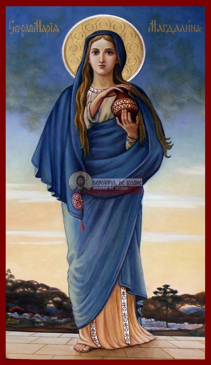 Aici este Sfanta Maria Magdalena, Mironosita si Intocmai cu apostolii. Se vede ca este mironosita dupa ulciorul cu mir pe care il poarta.